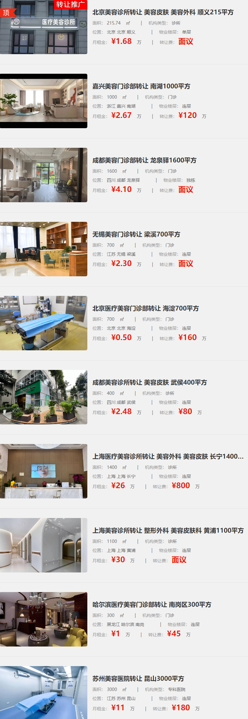 在指點(diǎn)網(wǎng)醫(yī)療機(jī)構(gòu)轉(zhuǎn)讓平臺(tái)上,匯聚了海量的美容醫(yī)院轉(zhuǎn)讓信息資源。這些資源涵蓋了不同地區(qū)、不同規(guī)模、不同經(jīng)營(yíng)狀況的美容醫(yī)療機(jī)構(gòu),為買(mǎi)家提供了豐富多樣的選擇空間。同時(shí),我們通過(guò)先進(jìn)的大數(shù)據(jù)技術(shù)與智能匹配算法,能夠根據(jù)買(mǎi)家的投資意向、預(yù)算范圍、地域偏好以及對(duì)醫(yī)院的特定要求等多維度條件,快速、精準(zhǔn)地篩選出符合需求的轉(zhuǎn)讓項(xiàng)目,并將其推薦給潛在買(mǎi)家。對(duì)于賣(mài)家而言,指點(diǎn)網(wǎng)則依托廣泛的行業(yè)渠道與龐大的客戶(hù)群體,將轉(zhuǎn)讓信息廣泛傳播,迅速觸達(dá)眾多有實(shí)力、有意向的潛在買(mǎi)家,大大提高了轉(zhuǎn)讓成功的概率與效率。這種高效的資源匹配機(jī)制,不僅節(jié)省了轉(zhuǎn)讓雙方的時(shí)間與精力,更促進(jìn)了醫(yī)美行業(yè)資源的合理流動(dòng)與優(yōu)化配置,讓優(yōu)質(zhì)的美容醫(yī)院能夠找到更合適的新東家,繼續(xù)在醫(yī)美市場(chǎng)中綻放光彩,為消費(fèi)者提供更加專(zhuān)業(yè)、優(yōu)質(zhì)的醫(yī)美服務(wù)。