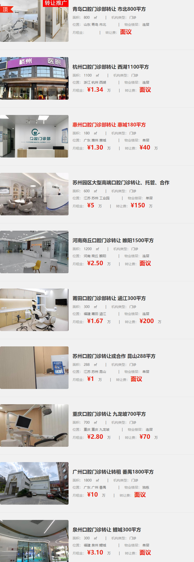 指點網(wǎng)專注于口腔醫(yī)療行業(yè)的轉(zhuǎn)讓服務(wù),擁有無可比擬的優(yōu)勢。首先,其專業(yè)性在行業(yè)內(nèi)首屈一指。指點網(wǎng)的團隊由一群對口腔醫(yī)療行業(yè)有著深入了解的專業(yè)人士組成。他們熟悉各類口腔機構(gòu)的運營模式,深知醫(yī)院、門診、診所、醫(yī)美口腔機構(gòu)在轉(zhuǎn)讓過程中的核心關(guān)注點。無論是從財務(wù)狀況評估、設(shè)備價值估算,還是從人員安置、品牌價值傳承等方面,都能夠為轉(zhuǎn)讓方和接手方提供精準(zhǔn)、專業(yè)的指導(dǎo)。