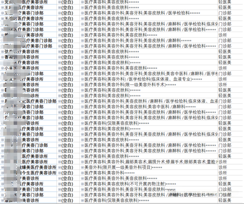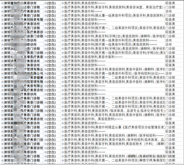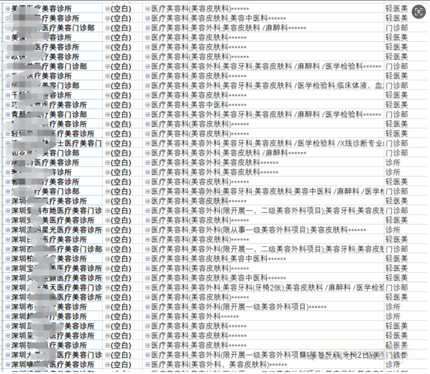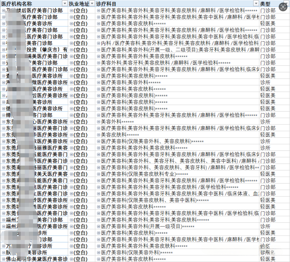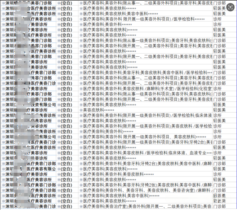 在 2024 年 12 月對(duì)廣東省大灣區(qū)醫(yī)美機(jī)構(gòu)大數(shù)據(jù)進(jìn)行梳理時(shí),一個(gè)不容忽視的現(xiàn)象浮現(xiàn)出來。相較于今年 2 月份的數(shù)據(jù),短短不到 10 個(gè)月的時(shí)間里,約有 340 家醫(yī)美機(jī)構(gòu)出現(xiàn)了各類異常情況,占比達(dá) 15% 左右。這些異常涵蓋了注銷、資質(zhì)變更、地址變更、法人變更、增減面積以及經(jīng)營業(yè)務(wù)變更等多種形式。