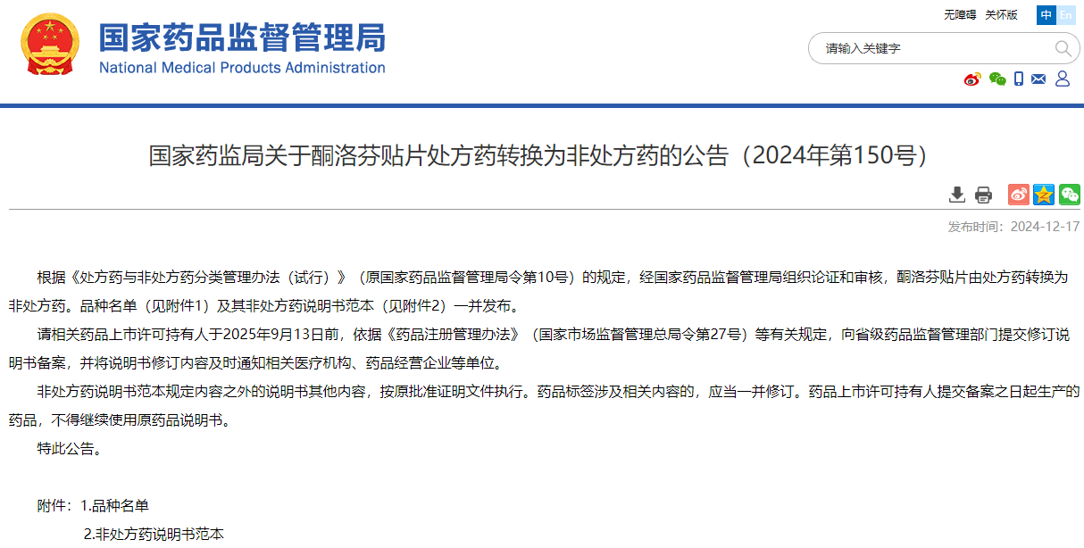 國家藥監(jiān)局將酮洛芬貼片從處方藥轉(zhuǎn)換為非處方藥是一項(xiàng)重要的藥品監(jiān)管決策,以下是詳細(xì)內(nèi)容: