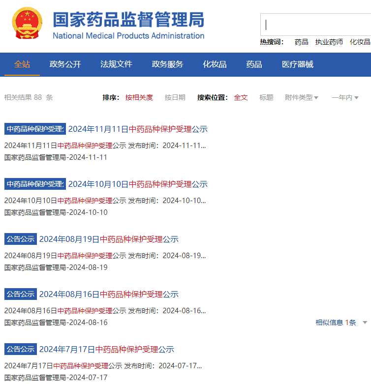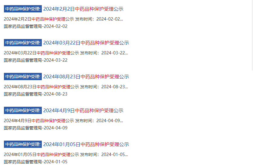 以下是 2024 年部分中藥品種保護(hù)受理公示情況: