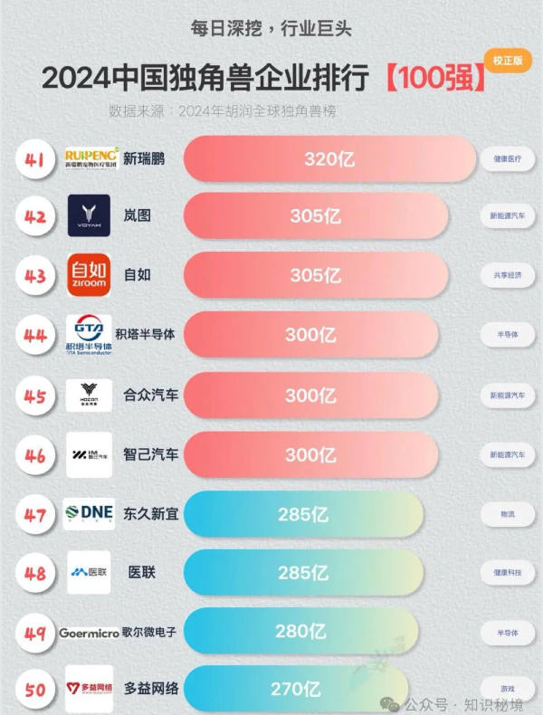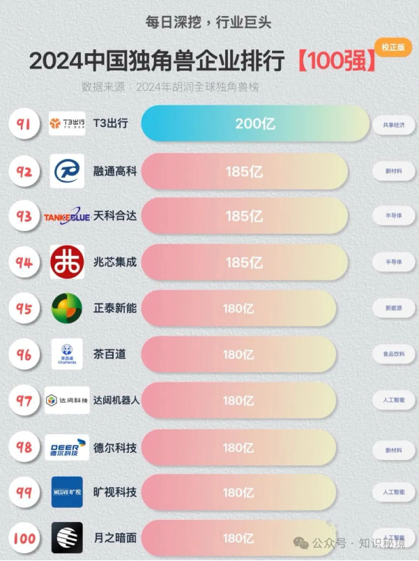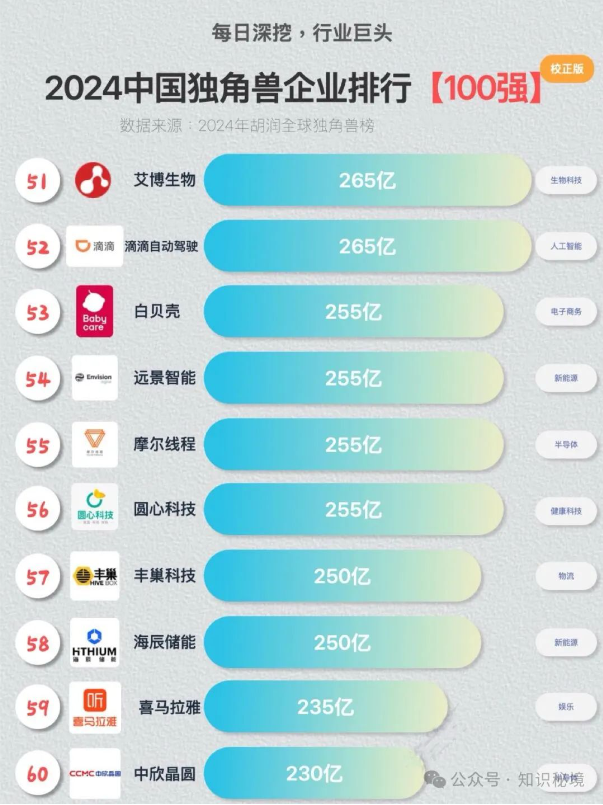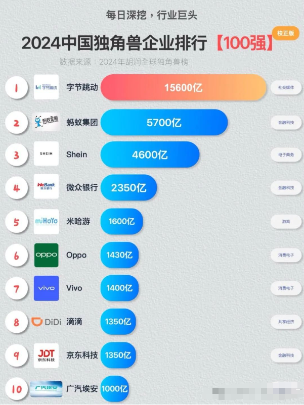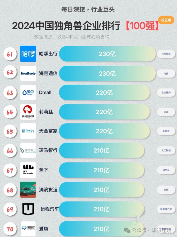 以下是根據(jù)相關(guān)信息整理的 2024 年中國獨(dú)角獸企業(yè)排行榜及相關(guān)情況: