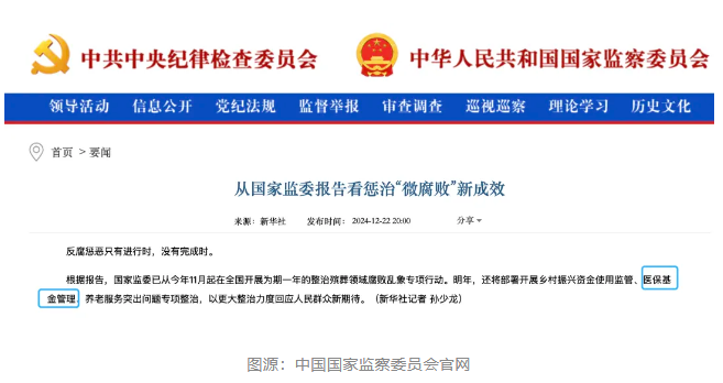 2024 年 12 月 22 日,國(guó)家監(jiān)察委員會(huì)向十四屆全國(guó)人大常委會(huì)第十三次會(huì)議呈交《關(guān)于整治群眾身邊不正之風(fēng)和腐敗問(wèn)題工作情況的報(bào)告》,彰顯出對(duì)民生領(lǐng)域腐敗問(wèn)題整治的堅(jiān)定決心。