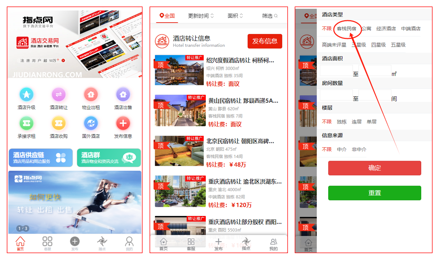 服務(wù)全面:服務(wù)覆蓋民宿轉(zhuǎn)讓、物業(yè)招租、資產(chǎn)出售等,滿(mǎn)足不同用戶(hù)的多樣化需求。