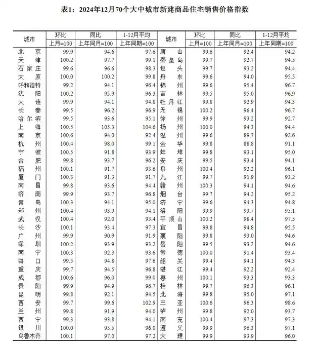 2025 年 1 月 17 日,國家統(tǒng)計局發(fā)布了 2024 年 12 月份 70 個大中城市商品住宅銷售價格變動情況。數(shù)據(jù)顯示,房地產(chǎn)市場出現(xiàn)了一些積極的變化。